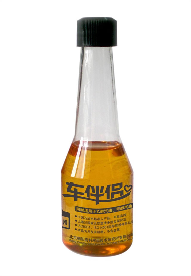 高科牌車伴侶汽油清凈劑(第四代燃油寶)是由兩種不同的高分子聚醚醇酰胺類混合物配以多種輔助劑復配而成,其中的重要成分是兩種不同的特種結構聚醚胺和聚醚醇酰胺,一種分子量約1000的合成聚醚胺具有非常強的清潔去垢作用,另一種分子量約2000的改性聚醚醇酰胺具有更高的養護保潔作用,同時具有減少汽油摩擦磨損的性能。這兩種特殊結構的聚醚胺都具有很好的抗氧化性和清凈分散性,對膠質化合物、微小顆粒具有極強的吸附及捕捉能力,可阻止其進一步的氧化和聚集,從而可大大減少汽油中沉渣的形成,與汽油的互溶性良好,且同時具有很好的防腐性能。該產品既具有一般PIBA(一般清凈劑常用的聚異胺)的清潔作用,同時分子量更大的胺熱穩定性好,對于發動機燃燒室前的油路系統具有更高的養護作用。與PIBA類的產品由于熱穩定性更強、燃燒不易于燃燒室形成二次積炭不同的是:這兩種特殊的胺類產品在隨著油氣混合物進入燃燒室,同時完成了對燃燒室積炭的軟化、分散、剝離、清除,后隨著油氣混合物一起燃燒,不會產生新的積炭等,終通過發動機排氣系統排出,因而該產品是目前對燃燒室清潔效果、安全的無灰添加劑。