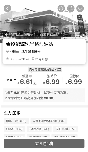 和來加油之前App上顯示的“3.50元/升起”,相差比較明顯。此時,App上該加油站顯示的價格也變成了“低至6.61元/升起”。