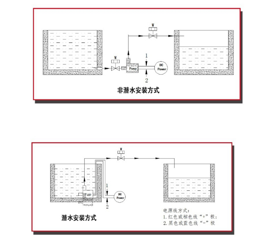 7、嚴禁接入交流電壓或大于水泵本身的直流電壓,嚴禁反接正負極.