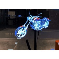 全息廣告機,LED燈條旋轉顯示,利用人眼暫留原理,形成圖形、動畫或者視頻,因其無邊框和背景,讓用戶感覺圖像是立體漂浮的,故稱全息廣告機或全息扇。