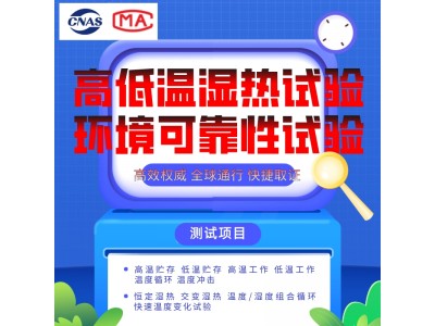 北京高低溫環境可靠性實驗室專業提供各類電工電子設備的高低溫環境試驗第三方檢測服務,實驗室具備各類通用工具如螺絲刀、直流電源、交流電源、電烙鐵、絕緣膠帶、網線等供您免費使用,高低溫試驗過程中,可以一直通電進行測試。高低溫環境試驗檢測報告一般是在高低溫試驗完成后的5個工作日內出具。試驗聯系張工13911260297.