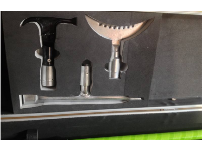除冰器具操作頭按照作用設(shè)計(jì)成不同形狀,使用時(shí)可以通過敲、鏟、鉤等方式有效除去瓷瓶、支架、導(dǎo)線及桿塔上的積雪及覆冰。使用時(shí),根據(jù)需要從套件中選取合適的除冰器具,將其安裝到絕緣桿的一端并擰緊后即可使用。絕緣桿分為長(zhǎng)、短兩種規(guī)格,可以根據(jù)現(xiàn)場(chǎng)情況進(jìn)行任意組合,以獲取合適的長(zhǎng)度來(lái)滿足不同場(chǎng)合的需求。
