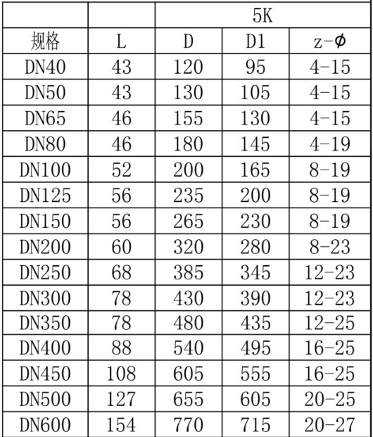 公稱壓力:5K-16K