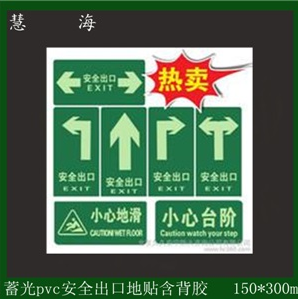 夜光安全出口地貼 蓄光安全出口貼地消防標識,PVC發光地貼描述