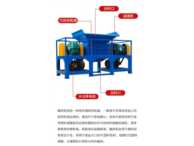 雙軸撕碎機(jī)通過用合金鋼組成的兩組刀盤相互剪切,將 軟硬物料撕碎,主要撕碎塑料包裝桶、橡膠輪胎、汽車杠、筐料、大卷薄膜、紙張、纖維、木頭、電冰箱外殼等。