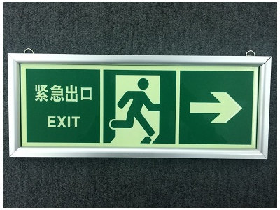 產品描述:1:通常采用0.41mm厚度蓄光型阻燃耐磨PVC或鋁合金板材作為基材,再表面印刷國標綠色圖案,常用產品背部帶有自粘膠,方便直接黏貼于光滑干凈的墻面。