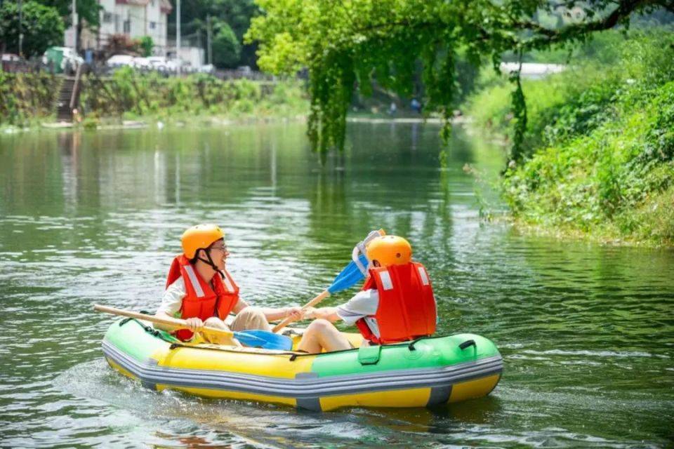 漂流河道全長(zhǎng)2公里,落差達(dá)50米,為體驗(yàn)者帶來(lái)約1-1.5小時(shí)的快樂航程。沿途既有水面開闊的緩流段,也有溪道曲折、水流湍急、跌宕起伏的刺激段,讓孩子們?cè)谇鍥龅乃斜M情歡笑。