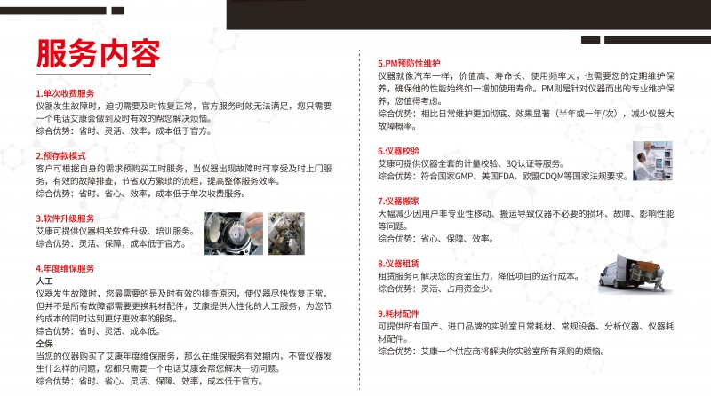綜合優勢:相比常維護更加che底、效果顯著(半年或一年/次),減少儀器大故障概率。