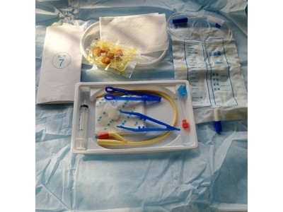 1.取出一小包裝并檢查,如包裝無破損滅菌有效期,則可撕開;2.撕開封口處,打開導尿包,把包內的無紡布、展開鋪于病人兩腿之間,戴好手套,把洞內鋪于病人陰部(注意:使尿道處于洞口中心部位);3.把導尿管前涂上二甲基硅油,左手用紗布固定陰金龜頭(女性為分開尿道口小陰唇),右手用鑷子持導尿管插入病人尿道,直至到達膀胱為止,然后將注射器內的無菌水從導尿管氣囊腔注入,使球囊充起,固定導尿管。將導尿管與引流袋導管連接,通過導管夾控制流量,可見有尿液流出;4.用后物品銷毀。